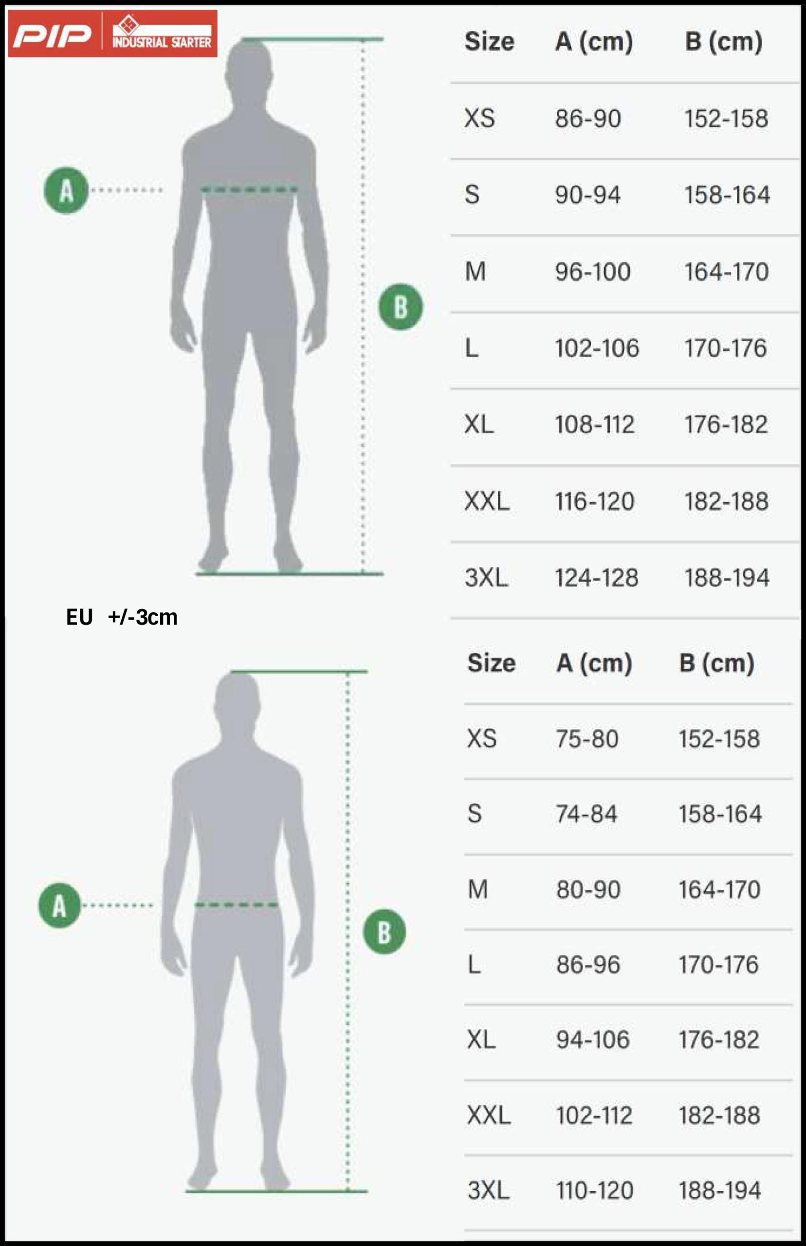 EN 343,3,1 • Yφασμα Πολυέστερ με επίστρωση PVC • Aνετη Eφαρμογή • Αντοχή στο κρύο, έλαια, λίπη, χημικά • Κουκούλα με κορδόνι • Κουμπιά με